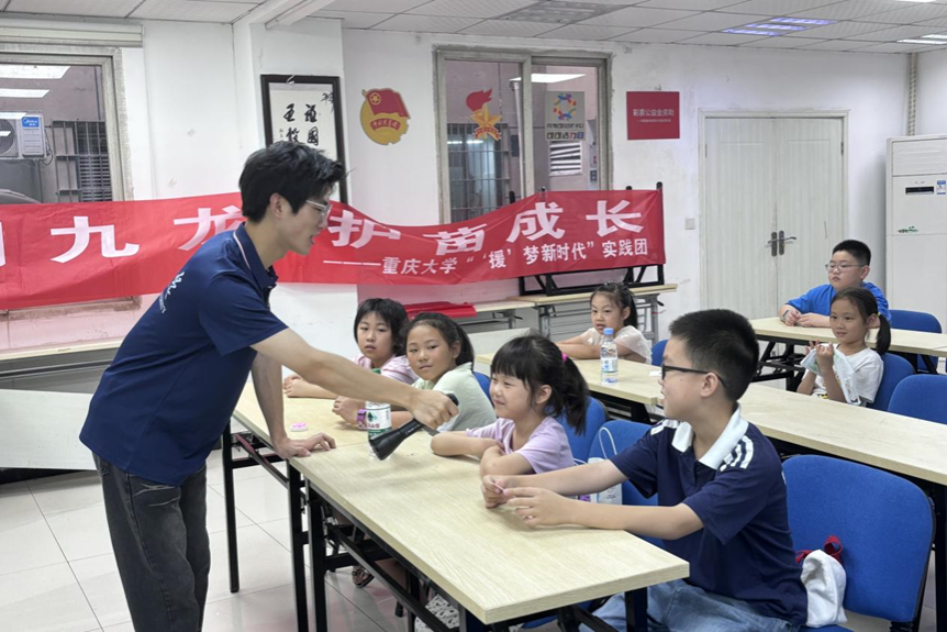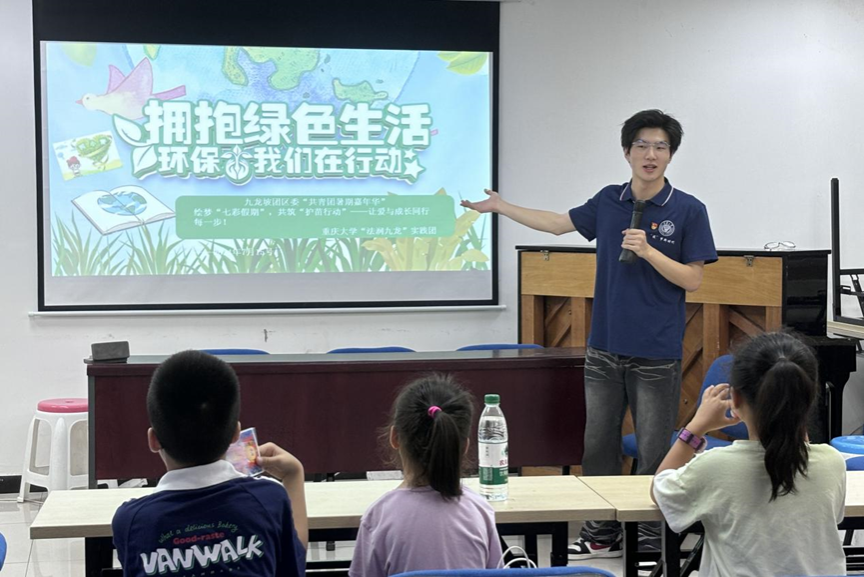 为了倡导绿色生活理念以应对环境问题、提高小朋友的环保意识、共同建设一个更清洁、更健康的生活环境,2024年7月15日上午9时30分,金沙js5588“援”梦新时代实践团“法润九龙”实践分队与九龙坡区委以及“河小青”志愿者联合开展“共青团暑期嘉年华”系列活动之“绘梦‘七彩假期’,共筑‘护苗行动’——让爱与成长同行每一步”宣讲活动,金沙js5588团委书记张雅莹带队参加。本次活动从低碳环保概念、低碳环保方式、垃圾分类科普和环保知识竞答等多个维度出发,打造了一堂精彩的环保小课堂。