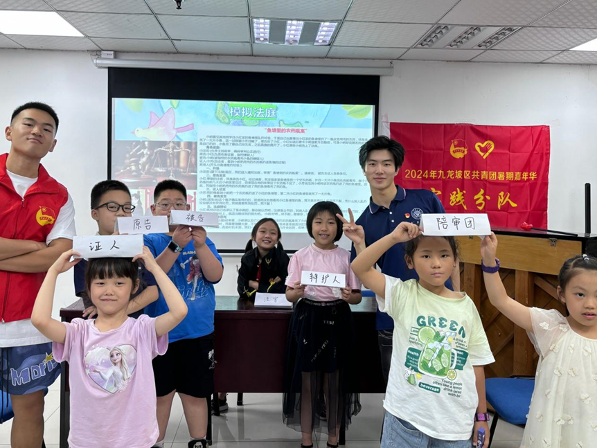 除了环保知识的讲解,实践团成员还充分发挥专业优势,设计了一个别开生面的模拟法庭环节,旨在让小朋友们了解法律知识,增强他们的法律意识。在模拟法庭中,实践团成员与小朋友们进行互动讨论,大家畅所欲言,分享在模拟法庭中的感受和收获。小朋友们纷纷表示,通过此次模拟法庭,他们不仅学到了法律知识,还深刻体会到了法律的威严和公平正义的重要性。