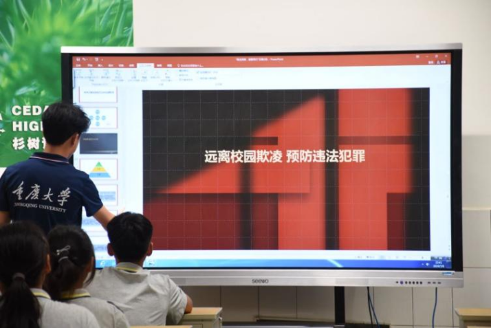 “你遭遇过校园霸凌吗?是怎么应对的呢?”在反校园霸凌知识的介绍中,实践团成员结合中员工的年龄及心理特征,通过几个典型案例向同学们阐述并介绍了员工欺凌常见的几种类型,以问答形式帮助同学们在了解遇到危险时应如何应对。