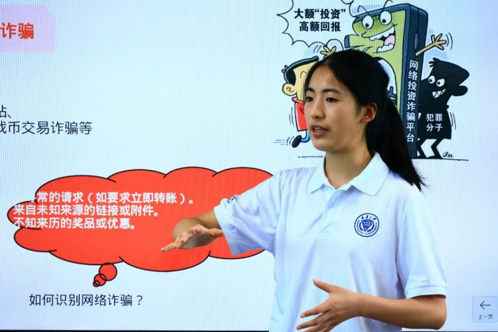 图为实践团成员向小朋友讲解网络诈骗(通讯员李佳奇 摄)