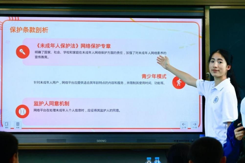 实践团成员首先组织“你画我猜”趣味小游戏,激发小朋友们学习法律知识的积极性。然后,实践团成员通过介绍《未成年人保护条例》,引导小朋友们合理安排上网时间,浏览健康有益的内容,保护个人隐私,实现寓教于乐。