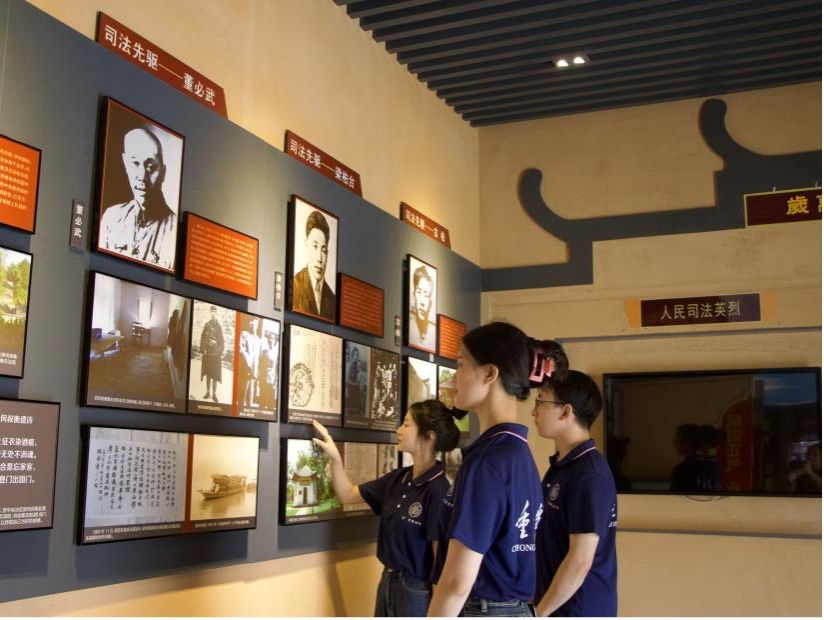 随后,实践团成员参观了全国首批法治宣传教育基地——中华苏维埃共和国司法部旧址。自1929年设立以来,党领导苏区人民先后起草和颁布了土地法、婚姻法、劳动法等130余部重要法律文件,为新中国法治体系的建立奠定了坚实的基础。在这里,实践团成员看到了苏区军民开展法治建设的伟大实践和探索,看到了中国共产党克服重重困难,带领人民群众从胜利走向胜利的光辉历程。
