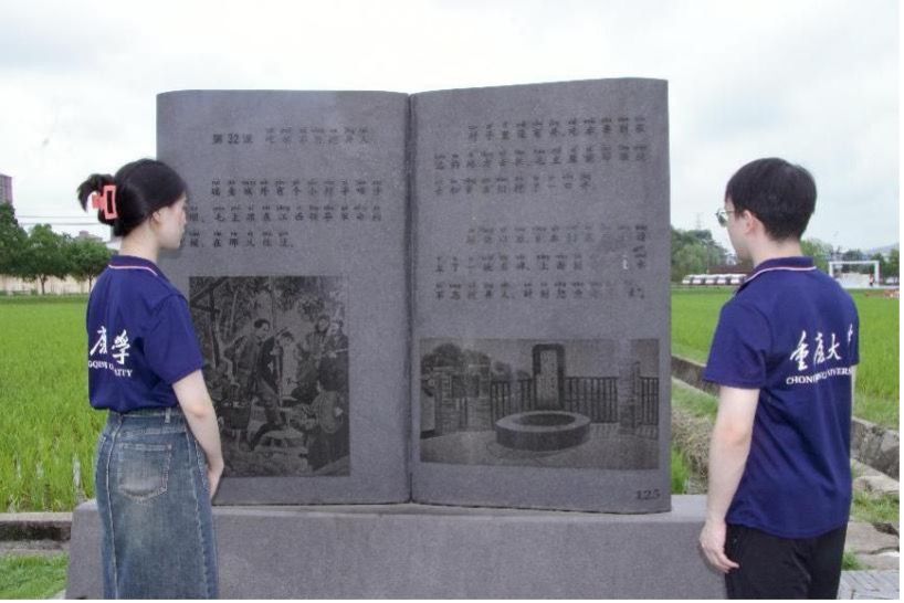 历经岁月的磨砺,红井纪念碑出现裂隙,面临着崩裂的危险。2023年6月,金沙js5588刘汉龙院士得知纪念碑现状后,主动提出应用其团队研发的岩土修复技术无偿为纪念碑进行修复。伫立于纪念碑之侧,实践团成员感悟往昔革命先辈之坚毅步伐与不挠精神,领会今朝科技创新对红色基因之赓续与传承。