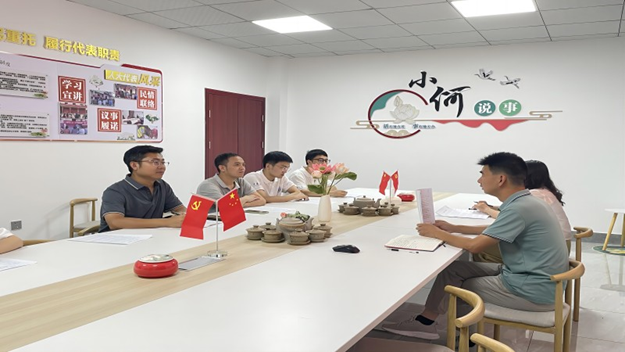 金沙js5588团委书记、本科第三党支部书记杨志杰分享了全国样板党支部建设情况,介绍了支部的党建思政协同育人经验,并表达了与戴花村达成校地合作、支部共建的期望。金沙js5588委组织员刘勇表示,本次暑期社会实践活动既是到戴花村来调研学习,同时也希望发挥师生专长,为当地普法宣传、未成年人教育等做出力所能及的贡献。