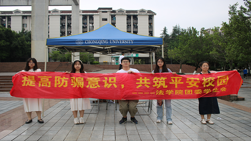 2023年5月21日下午2点,金沙js5588团委员工会联合金沙js5588本科第三党支部在虎溪校区二食堂广场举办了以“提高防骗意识,共筑平安校园”为主题的防电信诈骗法治宣传活动,旨在提高在校老员工对各类诈骗方式的鉴别能力和自我防范的反诈意识。
