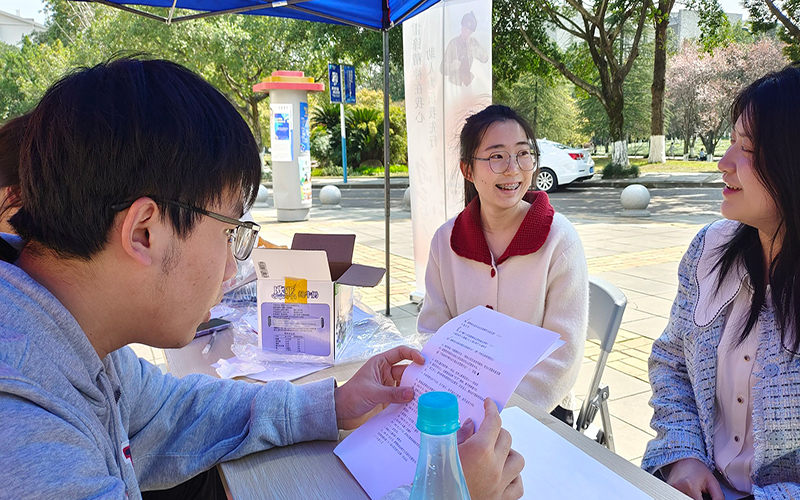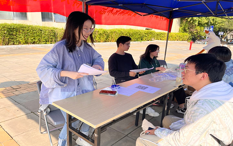 活动开始前,志愿者们早早来到南广场布置场地。为起到良好的宣传效果,此次活动不仅在现场派出志愿者进行宣讲,还通过线上宣传等方式邀请更多同学参与进来。