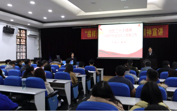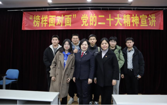 2023年2月23日,金沙js5588在210学术报告厅举行“榜样面对面”——党的二十大精神宣讲活动,党的二十大代表、重庆市大渡口区人民检察院检察五部主任、“莎姐”办公室主任、四级高级检察官梅玫应邀主讲。宣讲活动由委副书记、纪委书记刘淳主持。