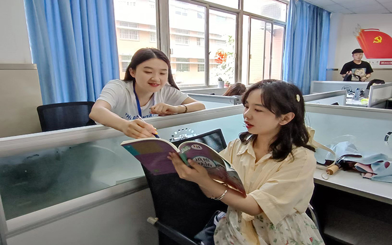志愿服务是贯穿她们大学四年生活的一个关键词。从图书整理到城市马拉松,从关爱特殊群体到为防疫一线工作人员子女提供网课辅导,在帮助和关爱他人的同时,张雯月不断践行着“志愿精神”和“为人民服务”的宗旨。张雯月说:“组织参与爱心社的校园助学活动和暑期支教活动使我了解到偏远地区的教育现状,引起了我对长期支教工作的关注。”朱彦霖也一样热衷于志愿服务,从小型的作文批改、送教下乡 、互通书信到大型的重庆马拉松赛事服务、英才大会等活动,她都参与其中。大四上学期研究生支教团开始招募,两个女孩毅然决然地报了名。