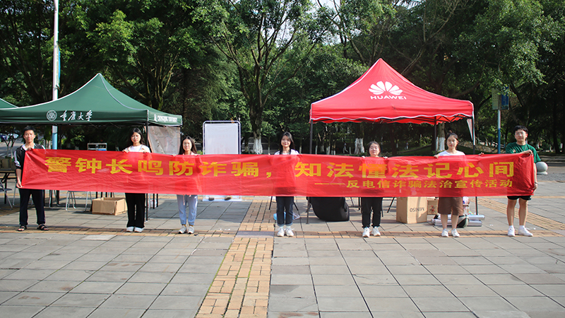 5月22日上午9:00,志愿者们提前到达虎溪校区一食堂南广场的宣传棚,开始布置活动场地。活动设置了反诈知识答题竞赛,同学们可以在规定时间内进行答题,并根据正确率来赢得参加互动活动的机会,兑换精美的奖品。在活动的进行过程中,有不少同学与志愿者们分享了身边的同学、家人遭遇电信诈骗的经历,并纷纷表示本次活动的意义重大。随着活动的开展,越来越多的同学聚集在宣传棚下,认真答题并学习反诈知识,在赢得心仪的奖品的同时,也进一步提高了自身的反诈意识和识破骗局的能力。下午5:00,活动结束,全体志愿者进行了合影留念。