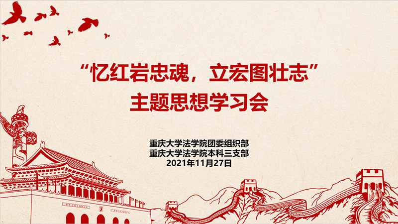 2021年11月27日晚上7点30分,以“忆红岩忠魂,立宏图壮志”为主题的学习会于线上顺利举行。本次会议由金沙js5588团委员工会与本科三支部联合开展,金沙js5588团委书记、本科三支部书记杨志杰,本科三支部全体党员同志、金沙js5588团委员工会全体成员、金沙js5588团员青年代表参加了本次活动。
