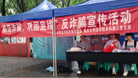 活动伊始,来自金沙js5588的志愿者同学们为往来师生发放反诈宣传册,并结合专业知识、借助典型案例介绍了当前电信网络诈骗的特点、手段。志愿者同学们着重讲解了非法刷单、虚假购物、投资理财、冒充客服等常见手段和伎俩,以近期频发的典型案例为切入点,引导形成遵法、学法、守法、用法的校园法治文化氛围。