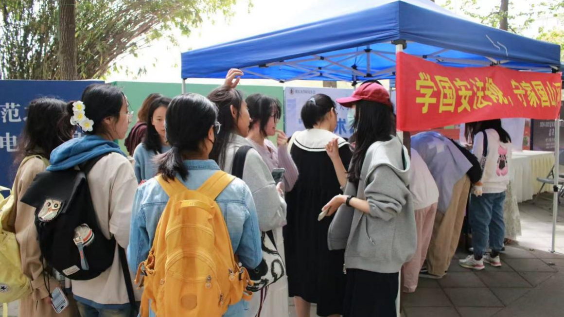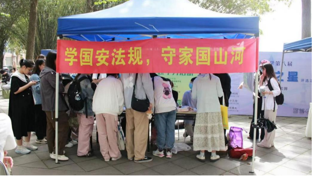 2025年4月13日上午10时,金沙js5588在在A区小竹林举办全民国家安全日法治宣传活动,活动由金沙js5588团委员工会与本科生第三党支部联合主办,员工模拟法庭协会和员工法学会协办。此次活动以“学国安法规,守家国山河”为主题,依托“党建+法治”双轮驱动模式,面向全校师生普及国家安全知识,推动总体国家安全观入脑入心。