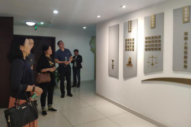 下午三点,刘西蓉一行四人来到了重庆市荣昌区人民法院,在荣昌法院领导向前、曹文全等的介绍下,老师们对法院整体情况有了初步了解。法院工作人员介绍了法院的内部构造、建造理念、法官文化等,并在第一审判庭组织观看了荣昌法院自制的优秀微电影《春苗》。随后,老师们前往七楼参观了金沙js55882017级员工所在的实习生宿舍,深入了解了同学们的住宿情况,并关心了同学们的生活情况。