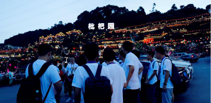 晚上来到了赫赫有名的枇杷园火锅,营员们吃着滚烫的火锅,涮着新鲜的毛肚,被重庆的美食深深吸引。夜幕逐渐降临,山坡上灯光亮起,红色的灯笼挂满山头。营员们沉醉于夜景迟迟不愿离去。回去的的路上,司机带大家游览重庆夜景,南滨路的璀璨华丽让大家一阵接一阵的感叹“真美啊”。