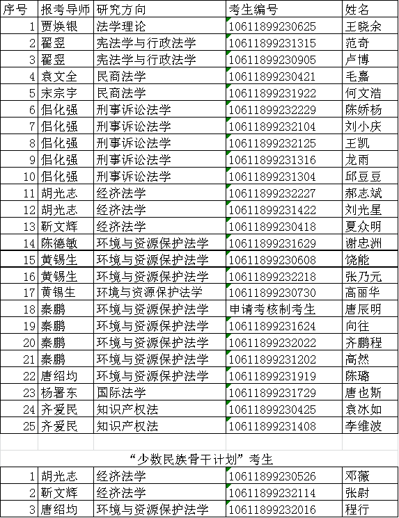 全日制法学博士招生名额8名(不包括新闻法学和马克思主义法学理论)