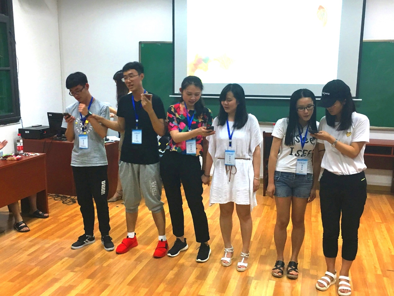 “破冰活动”包括3个游戏环节,分别是“请你记住我——接龙介绍”、“默契大作战——你画我猜”、“生存大考验——管理游戏”。 21位营员根据抽签随机地被分为3个组,以组为单位进行比赛,在3个游戏环节后总积分由高到低的组分别获得一、二、三等奖。 整个游戏过程充满着欢声笑语,大家玩得不亦乐乎,尤其是在“你画我猜”游戏环节,营员们表演得生龙活虎,让人忍俊不禁。在游戏当中,营员们展示出了优秀的分析处理能力和团队合作意识,最后第一小组更胜一筹,获得了一等奖。作为优胜组的他们还共同演唱了临时选定的歌曲《相亲相爱的一家人》,其余的伙伴们都情不自禁地鼓着掌为他们打节拍。来自西安交通大学的王廷兴同学说:“玩完游戏过后我都能记住大家的名字了,心里也开朗多了,真的很有意义。”活动的尾声,主持人还给营员们强调了明日的日程安排以及注意事项,本次夏令营迎生工作顺利结束。