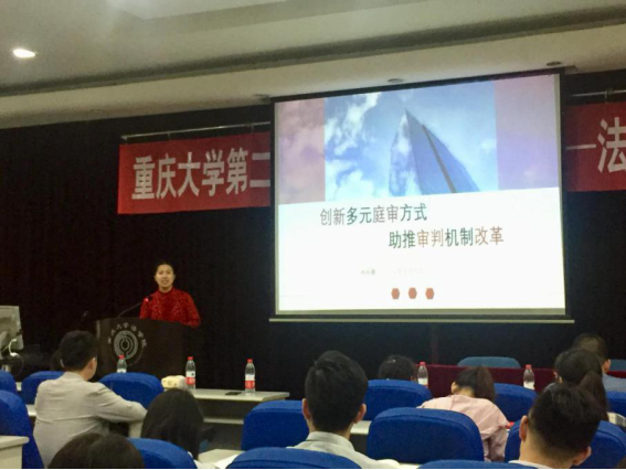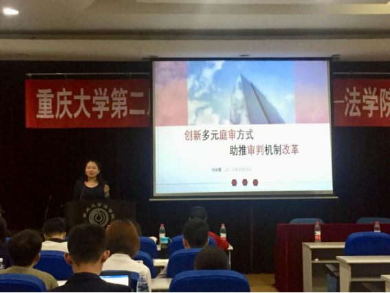 2018年5月9日晚7时30分至10时,重庆市两江新区知识产权法庭庭长,西南政法大学民商法硕士、美国天普大学法学硕士,中国知识产权研究会理事、重庆市人民政府WTO高级人才杨丽霞在金沙js5588二楼学术报告厅作了一场以“创新多元方式 助推审判机制改革”为题的学术讲座。本次讲座由金沙js5588李晓秋教授主持,金沙js5588曹博老师、刘媛老师以及金沙js5588100多名硕士和博士研究生聆听了精彩的报告。