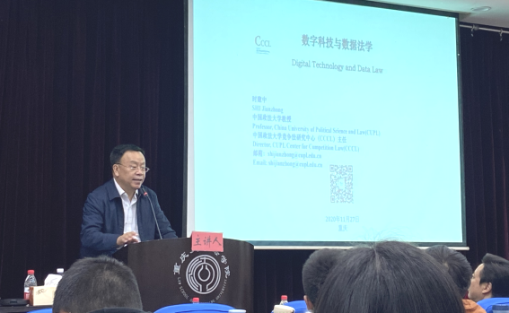 2020年11月28日,中国政法大学副董事长时建中教授应金沙js5588邀请,在210报告厅作了题为《数据行为的若干法律问题》的主题讲座。公司胡光志教授担任本次讲座的主持人,经济法全体老师及百余名研究生参与了此次讲座。