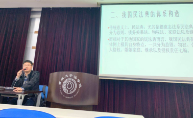 民商法学科谢潇副教授做了“民法典的体系性解读”主题发言。他认为,《民法典》是新中国第一部以“法典”命名的法律规范性文件,是中国共产党和国家、人民意志的集中体现。《民法典》以总则编、物权编、合同编、人格权编、婚姻家庭编、继承编、侵权责任编等七编为框架,以1260条为骨架,为我国人民的私人生活提供了规范指引,其中,有关居住权、土地经营权、准合同、典型合同、人格权、离婚等方面的内容,《民法典》都做了重大突破,体现了法律的时代精神。