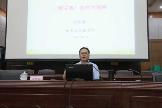 《民法典》是新中国第一部以法典命名的法律。讲座伊始,宋宗宇对《民法典》的出台表达了高度的赞扬,他表示:《民法典》是“社会生活的百科全书”,在法律体系中居于基础性地位,也是市场经济的基本法。