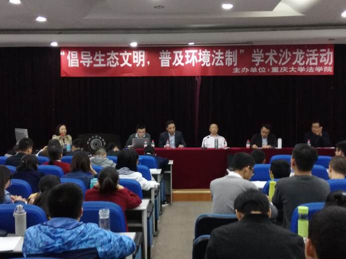 在“倡导生态文明、普及环境法制”学术沙龙活动中,由委刘西蓉书记担任主持人,黄锡生经理、唐绍均教授、王江副教授、董正爱副教授、杜辉副教授等五人分别围绕“生态文明建设的环境法解读”、“‘两山理论’的解释力、落地与制度回应”、“生态文明新时代的能源法发展”、“邻避纠纷解决的法治思维”、“环境权产生的历史逻辑”等主题进行专题发言,然后几位老师与同学们就相关问题进行了互动交流。同学们积极参与、反响热烈,活动现场座无虚席、学术气氛浓厚,学术沙龙在大家热烈的掌声中结束。