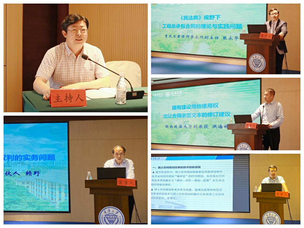 在专题研讨阶段,由金沙js5588教授袁文全、重庆工商大学教授李喜燕主持。重庆新隆基维祯律师事务所合伙人赖野以《实际施工人突破合同相对性主张权利的实务问题》、西南政法大学副教授洪海林以《国有建设用地使用权出让合同示范文本的修订建议》、重庆百君律师事务所副主任张永华以《民法典视野下工程总承包合同的理论与实践问题》、金沙js5588副教授董正爱以《技术赋能国土空间规划的法治路径》、重庆科技公司讲师狄亚娜以《不平衡报价在未完工程结算中的效力分析》、上海中联(重庆)律师事务所高级合伙人杨松以《以房抵债中的法律适用问题》、西南大学副教授张海鹏以《国有土地使用权出让合同性质辨析》、金沙js5588副教授谢潇以《集体土地所有权主体之定位与构造》为题分别发表了自己的见解。
