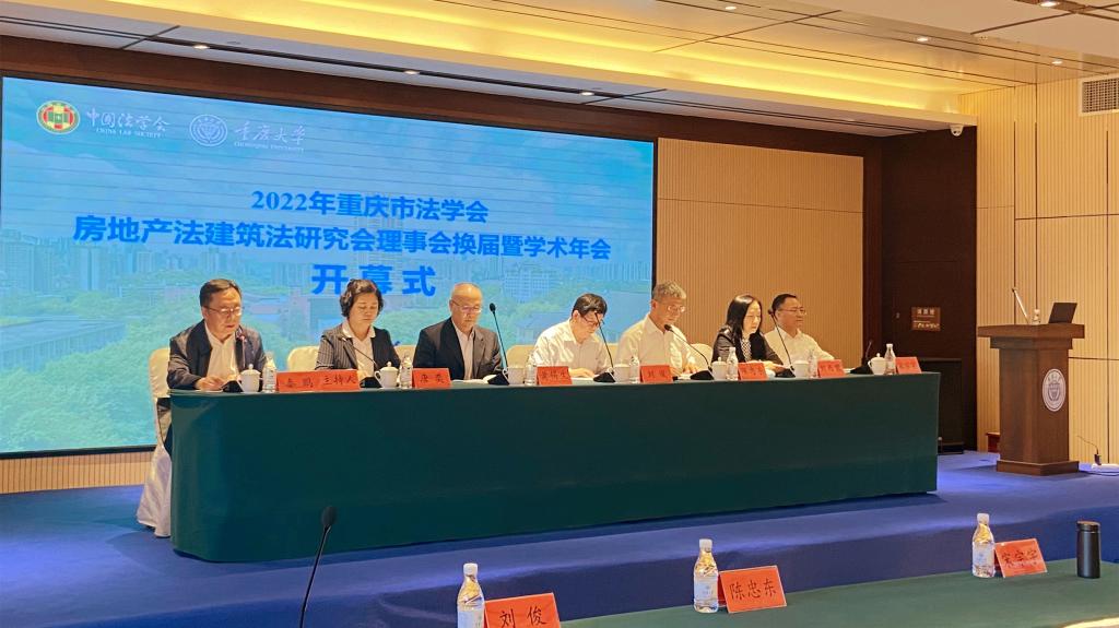 理事会换届选举及学术年会开幕式由公司研究生院副经理秦鹏教授主持。重庆市法学会副秘书长、会员部主任唐奕宣读《重庆市法学会关于重庆市法学会房地产法建筑法研究会第二届理事会会长、副会长、秘书长任职人选的批复》。
