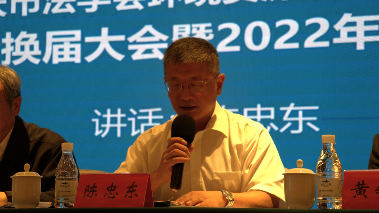 重庆市法学会党组成员、秘书长陈忠东代表重庆市法学会对新当选的黄锡生会长以及新一届环境资源法学研究会理事会成员表示热烈祝贺,并对为市法学会工作作出重要贡献的陈德敏会长及其带领下的第二届理事会全体成员表示衷心感谢。他分别从“深学笃用习近平法治思想,切实加强对重庆市环境资源法学研究的政治引领”、“充分发挥专业职能,在围绕中心、服务大局中展现新作为”以及“坚持科学规范管理,建设重庆市一流、西部领先的法学研究人才队伍”三个方面对新一届理事会提出了希望,并指出研究会应始终坚持党的全面领导,深入学习贯彻习近平法治思想,坚持服务党和国家工作大局,坚持稳中求进、开拓创新,坚持理论与实践相结合,深入开展法学研究,坚定不移推动我市环境资源法学研究事业高水平发展,继续为国家生态文明法治建设贡献智慧和力量。