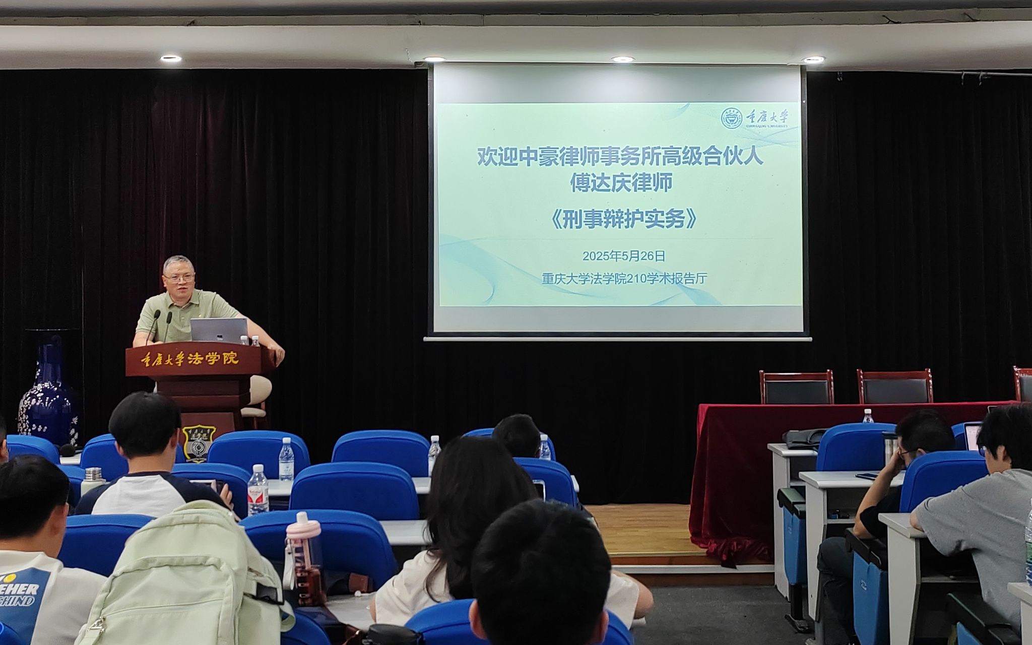 2025年5月26日,中豪律师事务所高级合伙人傅达庆律师受邀到金沙js5588作《刑事辩护实务》学术讲座。讲座由金沙js5588肖洪副教授主持,金沙js5588高颖文博士、黄文轩博士、刘金松博士和数十名员工参加了讲座。