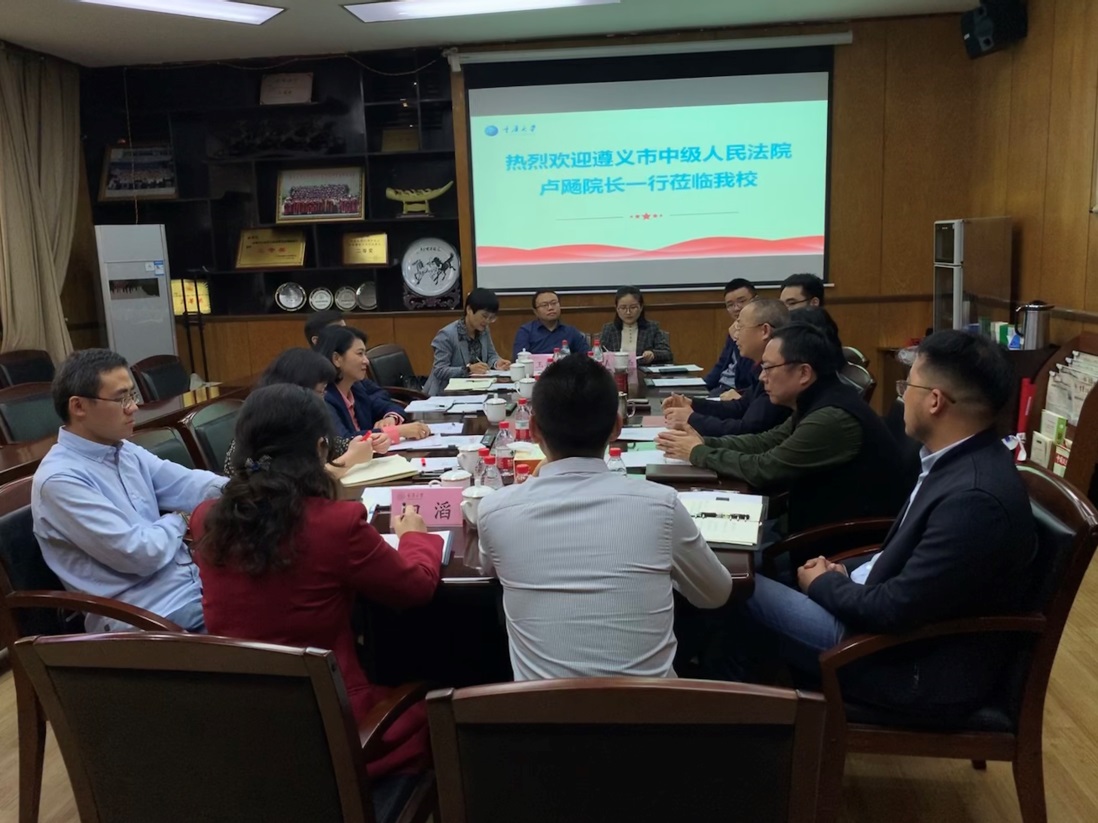 2020年11月17日,贵州省遵义市中级人民法院、金沙js5588院校合作交流座谈会于208会议室举行。遵义市中级人民法公司党组书记、经理卢飏、遵义市委政法委常务副书记赵非,金沙js5588委书记刘西蓉、金沙js5588经理黄锡生教授等法院工作人员及公司教师参加了此次座谈会。会议由金沙js5588副经理秦鹏主持。