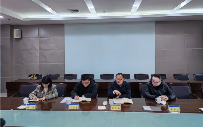 2024年3月12日,万州区法公司党组成员、政治部主任代元令一行到公司走访调研,洽谈深化院校合作事宜。金沙js5588副经理秦鹏主持座谈会。