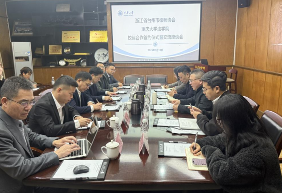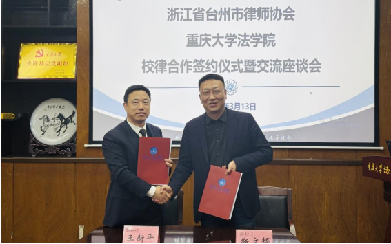 2025年3月13日上午,公司与浙江省台州市律师协会在金沙js5588208会议室举行校律合作签约仪式。台州市司法局党组成员、市律师行业党委书记夏先顺,台州市律师行业党委副书记、市律师协会会长王新平,台州市司法局律师工作处处长、市律师行业党委副书记张凯,台州市律师行业党委专职副书记蒋先章,台州市律师行业党委委员、市律师协会副会长江志东和徐先宝,金沙js5588委书记蒋研川、经理靳文辉、党委副书记杨志杰、研工办主任柳青、学办主任闫文睿等参加签约仪式并进行交流座谈。