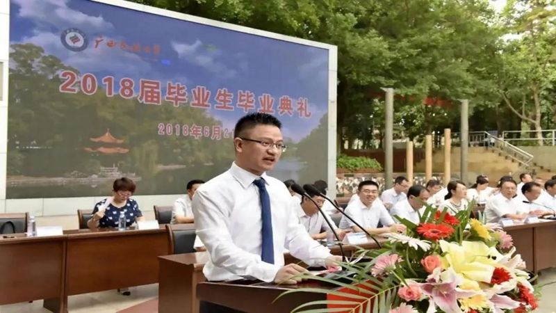 陈星作为教师代表在广西民大2018届毕业生毕业典礼上发言