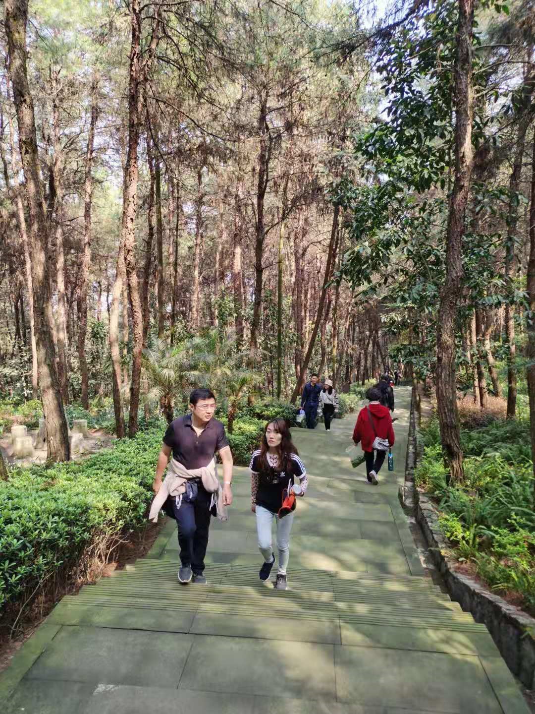 经过短暂的集合,大家在铁山云梯前拍照留念。随后,蓄势待发,向铁山坪山顶迈开了脚步。一路上员工们欢声笑语,互相交流彼此的工作生活,回忆在母校的点点滴滴,畅叙员工情谊。