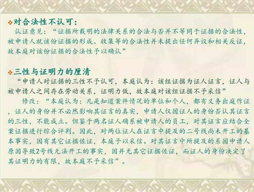 认证意见:“证据所载明的法律关系的合法与否并不等同于证据的合法性,被申请人就该份证据的形成、收集等的合法性并未提出任何异议和相关反证,故本庭对该份证据的合法性予以确认。”