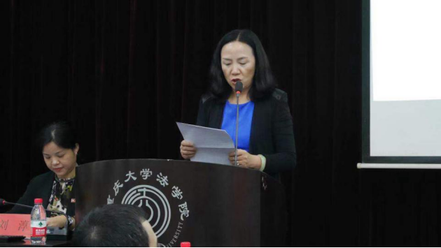仪式首先由刘西蓉致辞,刘西蓉书记介绍了从1945年建院伊始,再经历了1952院系调整后,又度过1995到2002年的恢复发展阶段,终于到现在形成了“重大法学现象”的良好局面的金沙js5588发展历程,刘西蓉通过对金沙js5588奋斗历史的回顾,希望我辈重大法律人继续发扬“研究学术,造就人才”的校训精神,为国家法治事业奉献重大法学的力量。最后刘西蓉书记向出席本次仪式的员工表达了诚挚的感谢。