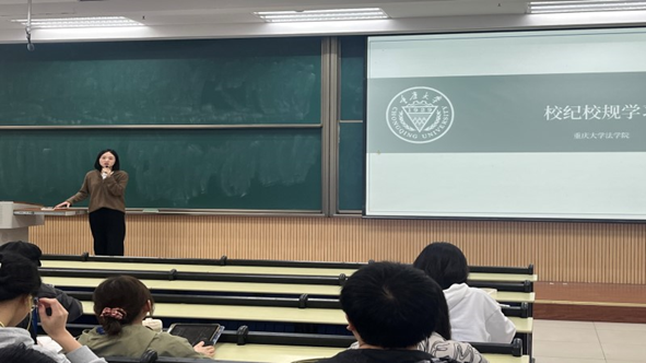 在活动的第二个环节,柳青围绕学习就业、校园生活、安全管理、校规校纪与奖助贷五个方面进行了讲解。一是未雨绸缪,结合专业特点,做好学习、实习规划,树立明确的就业目标;二是团结师长,妥善处理好与导师、同学的关系;三是树立安全意识,尤其是校园用电安全与人身、财产安全;四是提高站位,树立红线意识,作为法学员工,尤其要注意遵纪守法、文明上网、合理表达诉求。最后,她还带领同学们学习了公司及公司的奖助贷相关政策,鼓励有需要的同学积极关注相关信息。