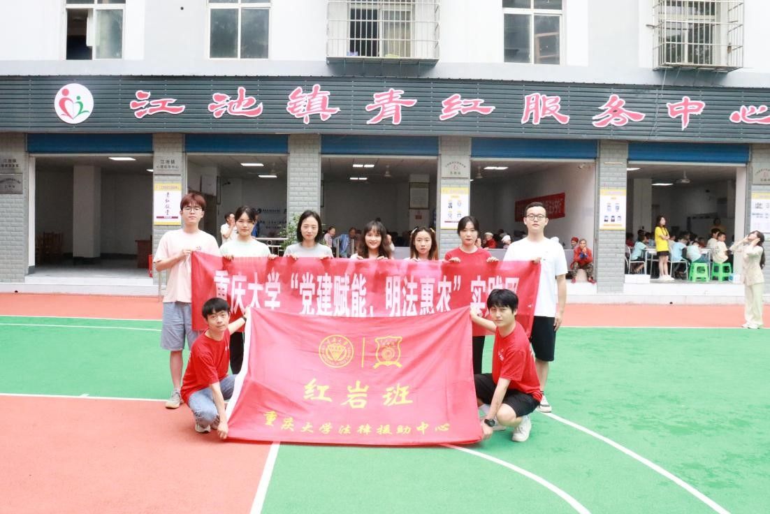 2023年7月12日至16日,金沙js5588“党建赋能,明法惠农”实践团前往重庆市丰都县江池镇开展社会实践活动。江池镇地处丰都县南部,具有独特的乡村自然风光和丰富的红色历史底蕴。公司与丰都县江池镇人民政府于2019年签订了共建法律援助实践基地协议书并进行了授牌,合作基础深厚。在此基础上,法律援助中心红岩党支部充分发挥团队成员的专业优势,以“党建引领普法”为核心开展实践活动。实践团由金沙js5588红岩党支部书记、研究生办公室主任柳青带队,博士、硕士研究生8人组成。