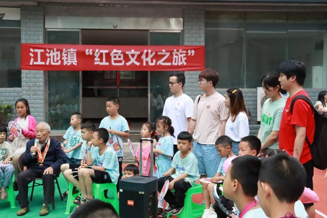 下午,实践团成员前往青红服务中心门前广场,同当地群众一起聆听川鄂边游击队队员、离休干部、现龄93岁老党员杜永清同志讲述其在战争年代的英雄事迹,重温红色故事。