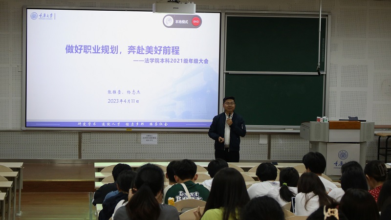 为了给予同学们更充分的职业规划指导,同时加强对同学们心理健康的教育和疏导,2023年4月11日晚七点半,金沙js5588本科2021级在虎溪校区D1125教室召开以“做好职业规划,奔赴美好前程”为主题的年级大会。金沙js5588团委书记、本科2021级辅导员杨志杰和金沙js5588学办主任、本科2021级辅导员张雅莹出席并主持了本次大会,金沙js5588本科2021级全体同学参会。