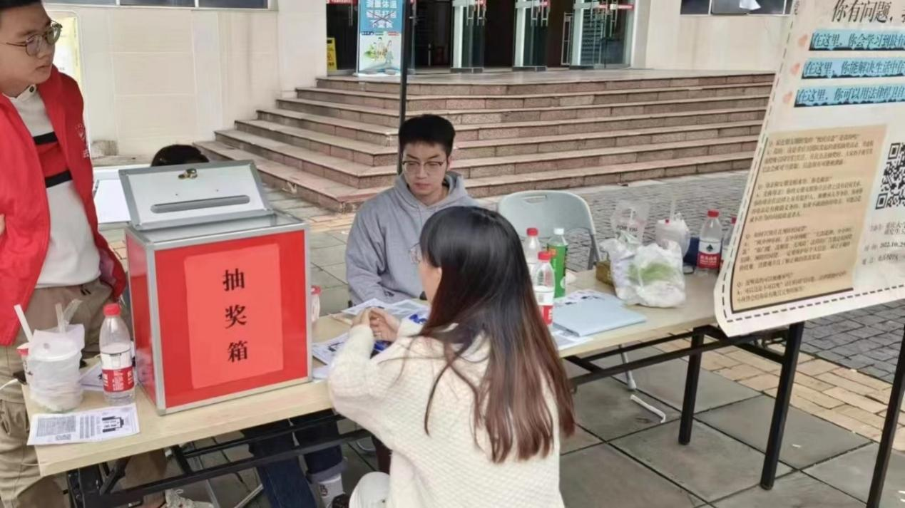 第一场活动在金沙js5588A区逸夫楼正门举办,由金沙js5588员工法律援助中心副主任曾凡力、杨翼维组织,第二场活动在金沙js5588虎溪校区第一食堂侧门举办,由副主任张珑耀、陈思源组织。活动主要包括发放普法宣传单、国家安全教育宣传以及现场问答。志愿者们热情高涨,积极地参与活动。在A区校内,志愿者有序引导参与活动的居民和同学填写问卷,提出一些与法律相关的问题。在虎溪校内,志愿者就国家安全相关法规向校内同学进行了细致讲解。同时,大家也对直接前来咨询的同学现场提供了法律问题答复,活动现场氛围十分活跃。