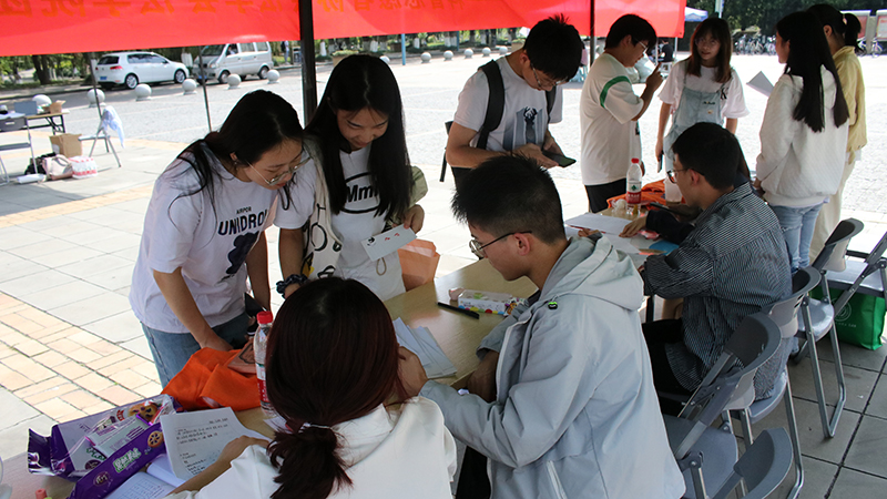 随着活动的开展,宣传棚下围聚的同学们越来越多,大家热情高涨,兴致勃勃,积极参与游园会。志愿者们也前往南广场周边主动宣传,吸引许多同学前来参加活动。同学们在问答中或气定神闲,或恍然大悟,纷纷表示在游园会中发现了前所未见的商标,也见到了极为相似的盗版商标,在开阔眼界的同时,也提升了自身的知识产权保护意识。