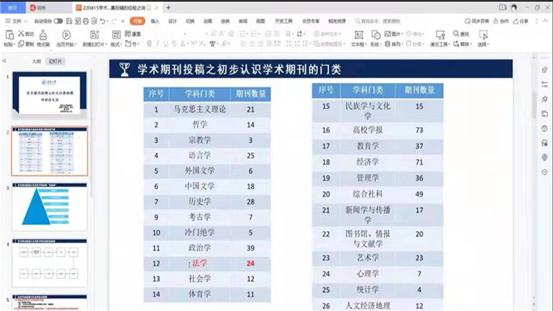 接着,2020级经济法学硕士陆成虎为同学们分享了学术期刊投稿与征文比赛投稿的经验。他从学术期刊的门类、学术期刊的“等级”、学术期刊的投稿流程、征文比赛的等级与类别以及学术期刊与征文比赛的区别等方面为同学们进行了详细的介绍。