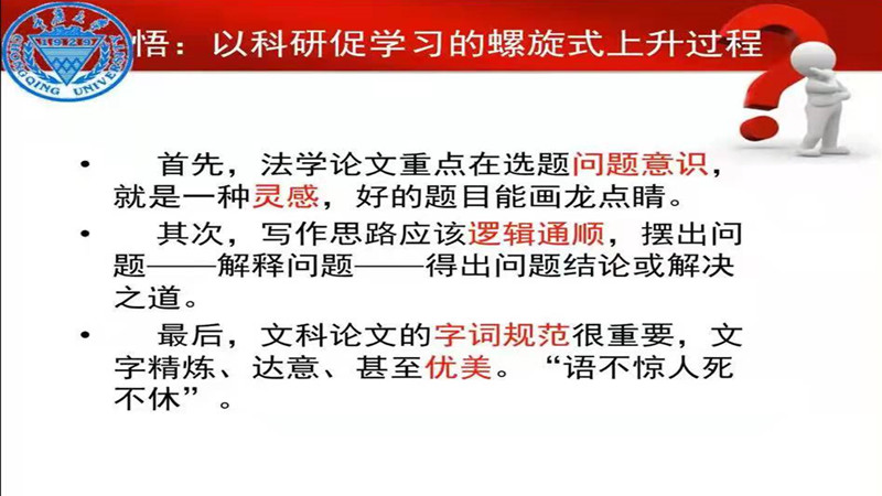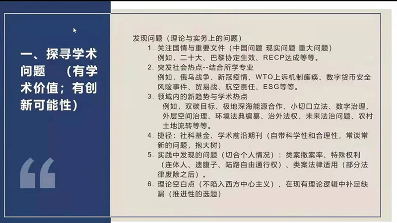首先,研究生一支部国际法学博士江莉为同学们分享了学术论文写作的选题方法,并详细的向同学们介绍了论文写作的流程以及在写作过程中应当关注的问题,使同学们对于论文写作有了一个初步的认识。