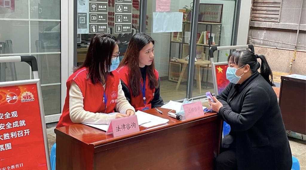活动的最后一个环节,志愿者们为居民们提供法律咨询。2021级硕士研究生蒋小梅回应群众关切,讲解了社区居民最关心的群租房问题。继承纠纷、侵权纠纷……在咨询之后,得到满意答复的居民紧紧握住志愿者的手表示感谢。