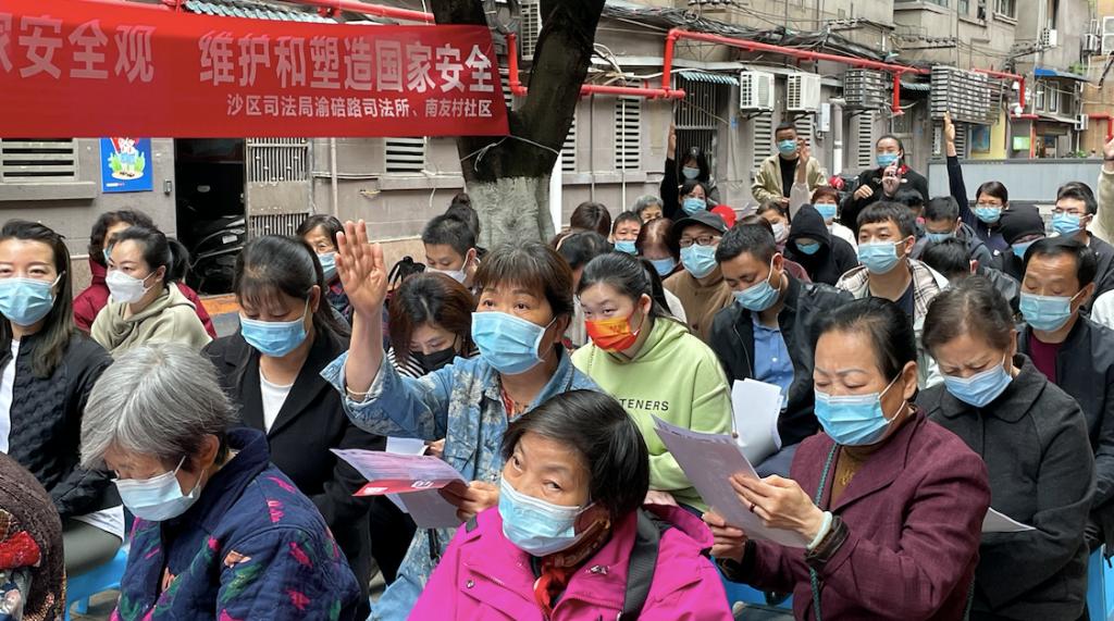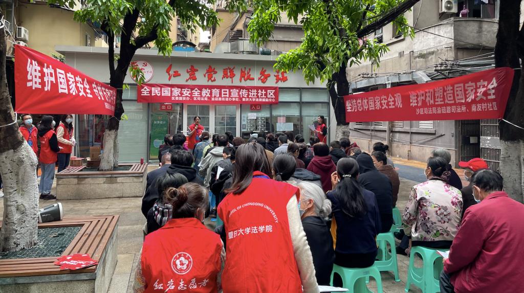 4月15日上午,为迎接我国第七个全民国家安全教育日,由区委国安办、区司法局、渝碚路街道、金沙js5588法律援助中心、公司研究生第九党支部联合举办的全民国家安全日进社区宣传活动在南友村社区院坝进行。8名志愿者通过现场讲座、知识问答、法律咨询等方式,向居民群众普及国家安全知识。