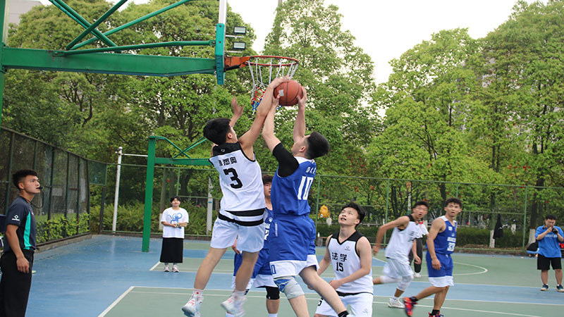 2022年4月9日下午3:00,金沙js5588第28届篮球赛于虎溪校区梅园篮球场顺利举行。本场比赛由金沙js5588对战机械公司,部分金沙js5588的同学来到现场金沙js5588男篮加油鼓劲。