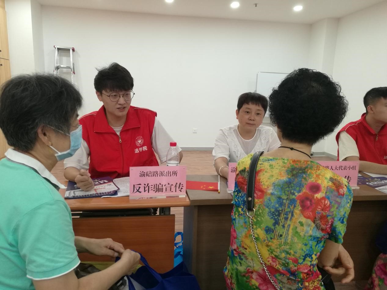 现场金沙js5588的志愿者通过知识抢答赛的形式让居民积极参与到活动中,向居民做了电信诈骗真实案例的详细讲解,呼吁居民提高警惕,提升防诈骗意识,引导居民科学、合理使用电子支付,不给不法分子可乘之机。最后金沙js5588的志愿者和渝碚路司法所、渝碚路公安派出所为参加活动的群众发放了防范电信诈骗宣传资料并提供了法律咨询,针对居民关心的民法典涉及的物权、婚姻、继承等问题进行了详细解答。此次受教育人群达100余人、法律咨询20余人,发放宣传材料达100余份。