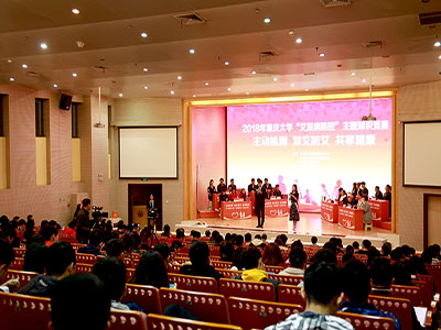 2018年11月29日下午2:30,金沙js5588艾滋病防控主题知识竞赛决赛于虎溪图书馆1F-7顺利举办。此次竞赛由金沙js5588虎溪校区党工委、金沙js5588虎溪校区管委会、金沙js5588校医院主办,由金沙js5588承办。虎溪校区管委会副主任刘东,校医院经理张毅,校医院公卫科科长贾红莲,金沙js5588团委书记杨志杰,金沙js5588学办主任刘冬梅,以及专家评委、沙坪坝区疾控中心主任李庭荣出席此次竞赛。参赛代表队伍有金沙js5588、材料公司、公管公司、电气公司、生医公司、计算机公司、城环公司和软件公司。2018级部分公司同学到场观看。