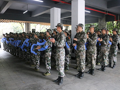 重庆一连数日的阴雨沉闷天气并未对新生们的精神面貌产生一丝一毫的影响。一排排,一列列,新生们踩着整齐有力的步伐井然有序地进入架空层,按照教官的指令整理队列,最后以军姿状态站定,等待活动的开始,神采奕奕。慰问开始,杨志杰老师向教官以及新生们一一介绍出席本次慰问活动的领导,现场掌声连连。